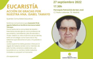 Sentimos comunicaros que el pasado 19 de agosto falleció en Sevilla la hermana Isabel Tamayo.