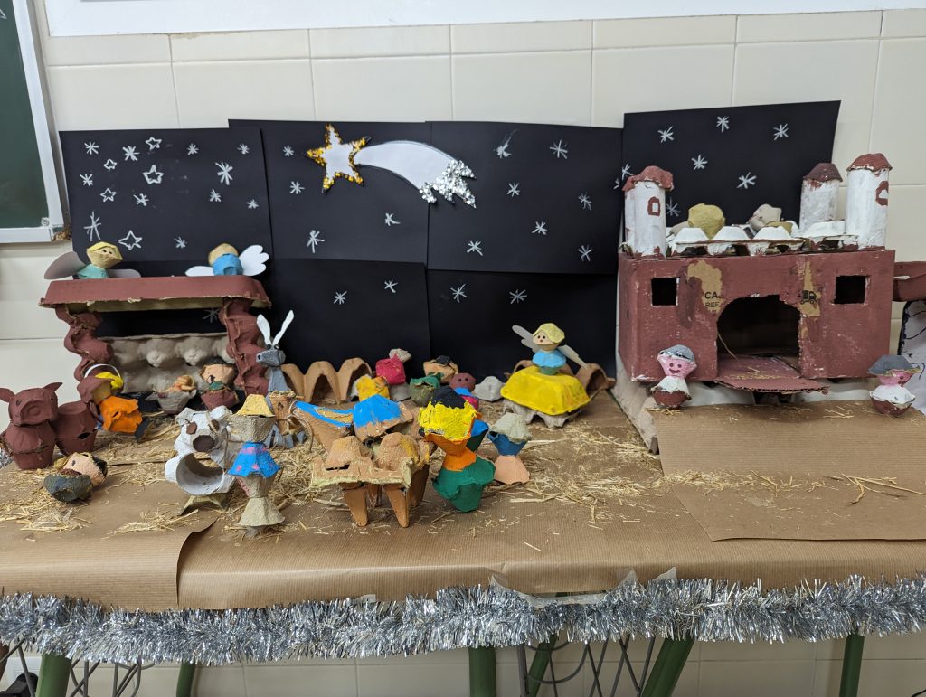 En la mayoría de las ocasiones utilizaron material reciclado para darle una segunda vida y les ha servido para crear figuras como la virgen María, José o el niño Jesús. A continuación os mostramos las bonitas decoraciones navideñas de los pasillos de estos cursos. ¡Mirad qué bonito quedó!
