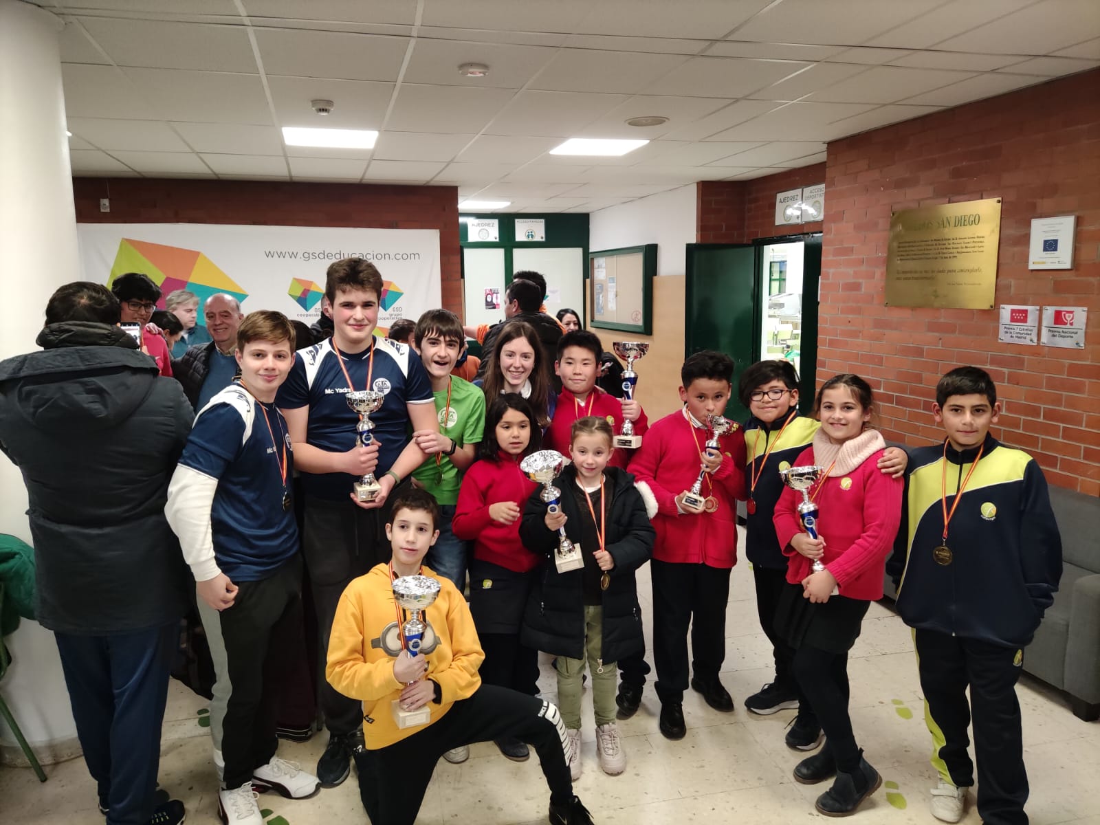 El pasado mes, doce alumnos del colegio participaron en los Juegos Deportivos Municipales de Ajedrez en el distrito Puente de Vallecas. Todos ellos, desde 2º de Educación Primaria hasta 3º de la ESO, lograron resultados estupendos y, sobre todo, se lo pasaron genial y terminaron con ganas de aprender muchísimo más. Además, varios de ellos fueron campeones y subcampeones en sus respectivas categorías y se clasificaron para la final de Madrid que se realizará el próximo sábado 4 de marzo. ¡En la categoría Alevín (5º y 6º Educación Primaria), todos los ganadores fueron de nuestro colegio! ¡Felicidades a todos y todas!