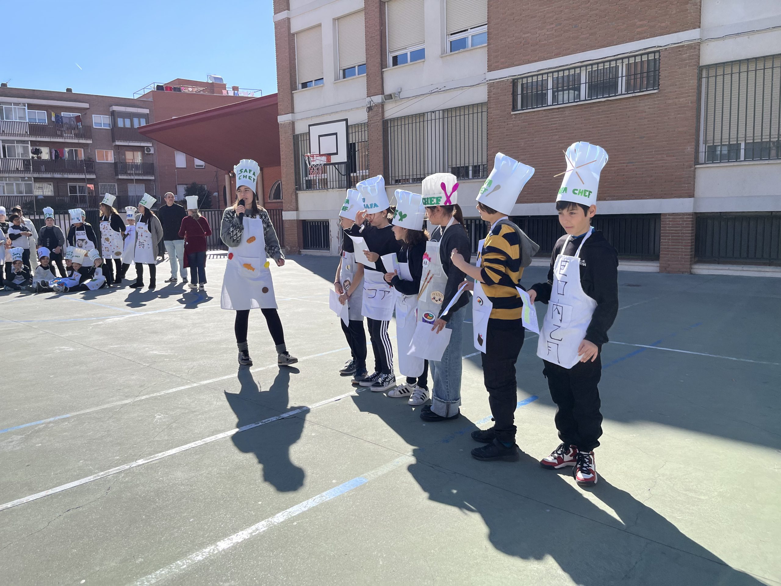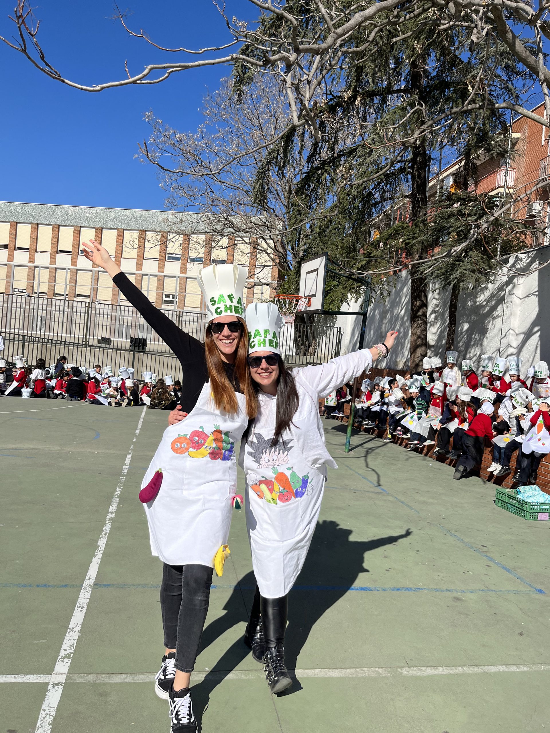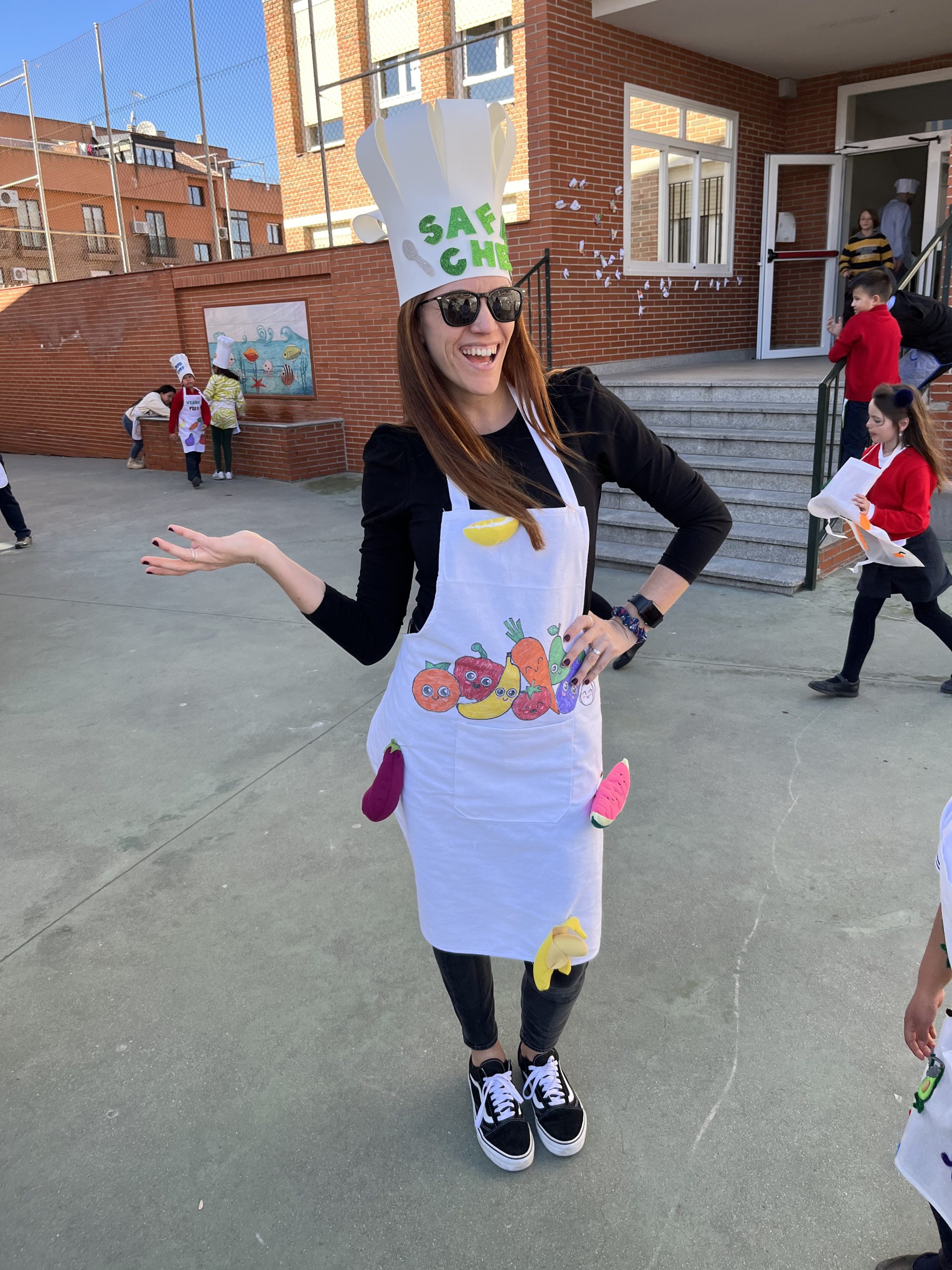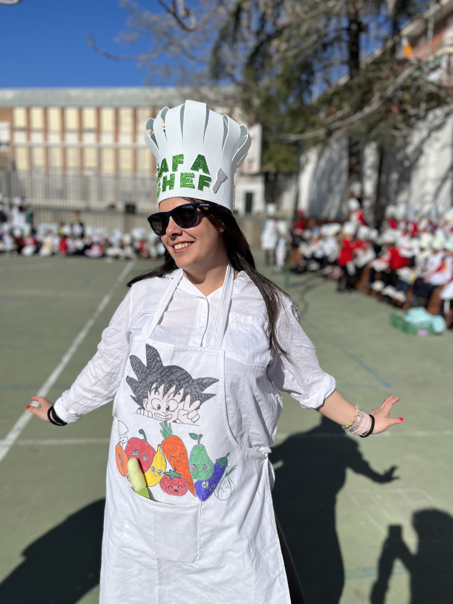 El viernes fue el colofón final: todo infantil y primaria nos vestimos de cocineros: reposteros, cocineros vegetarianos, cocineros de comida italiana y cocineros de sushi. El alumnado de 6º de primaria, de luto y con mucha pena, se encargó de quemar y enterrar nuestra sardina en el patio, a lo que siguió una fiesta con la mejor música carnavalera.