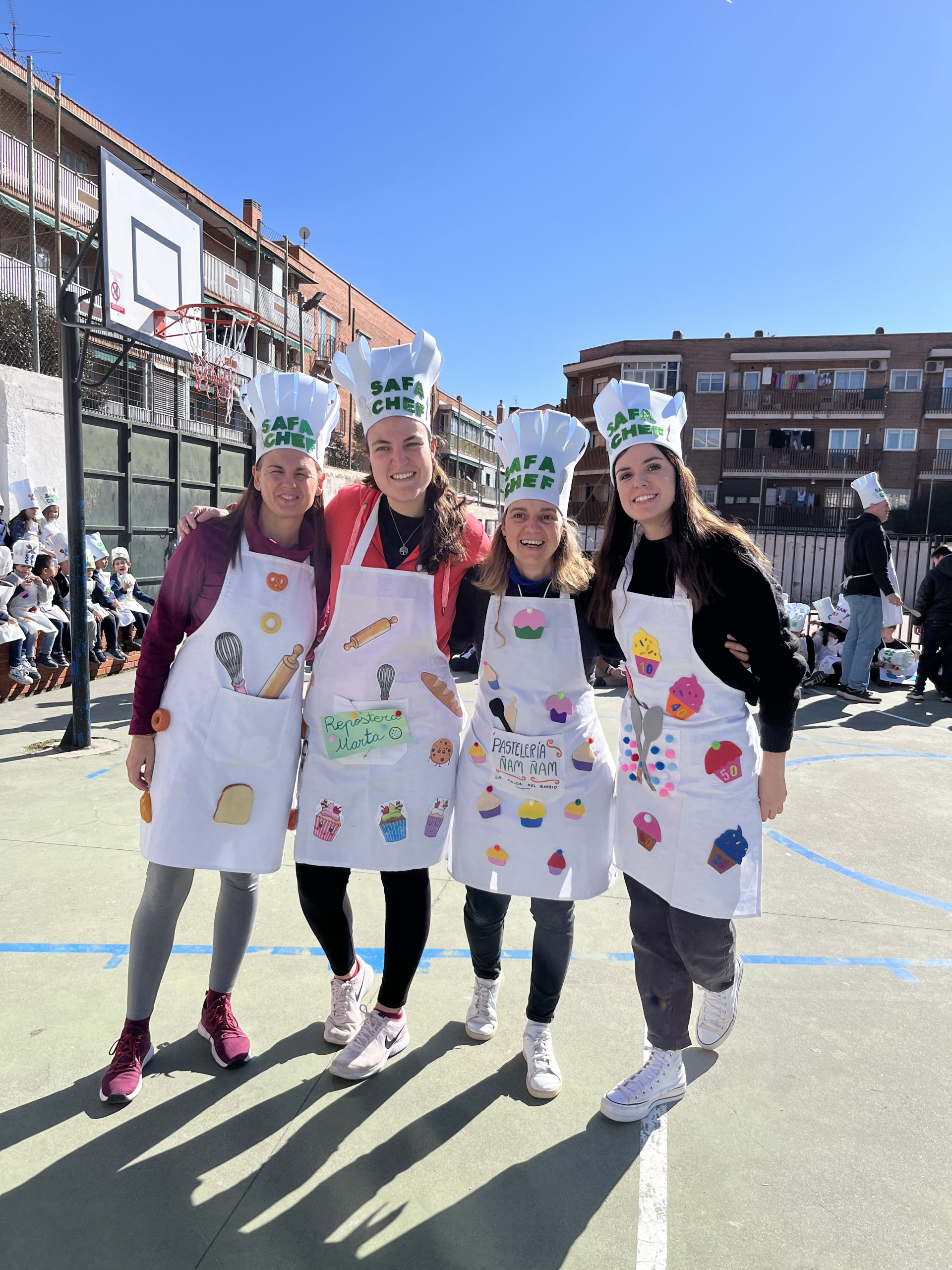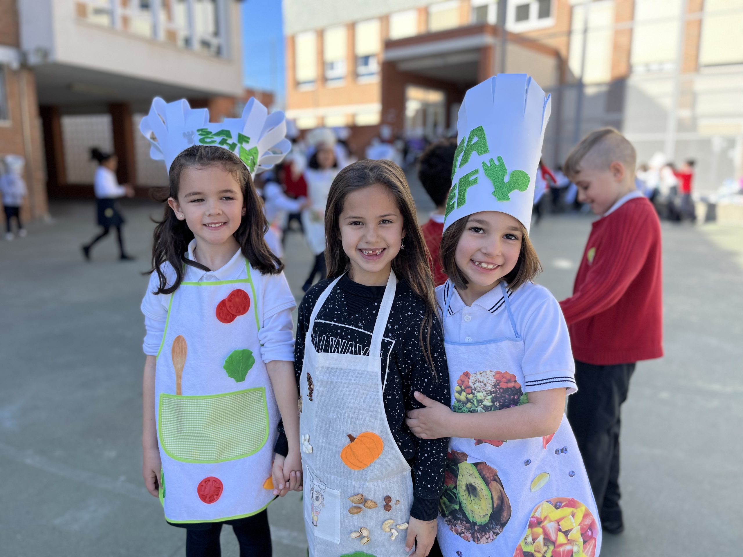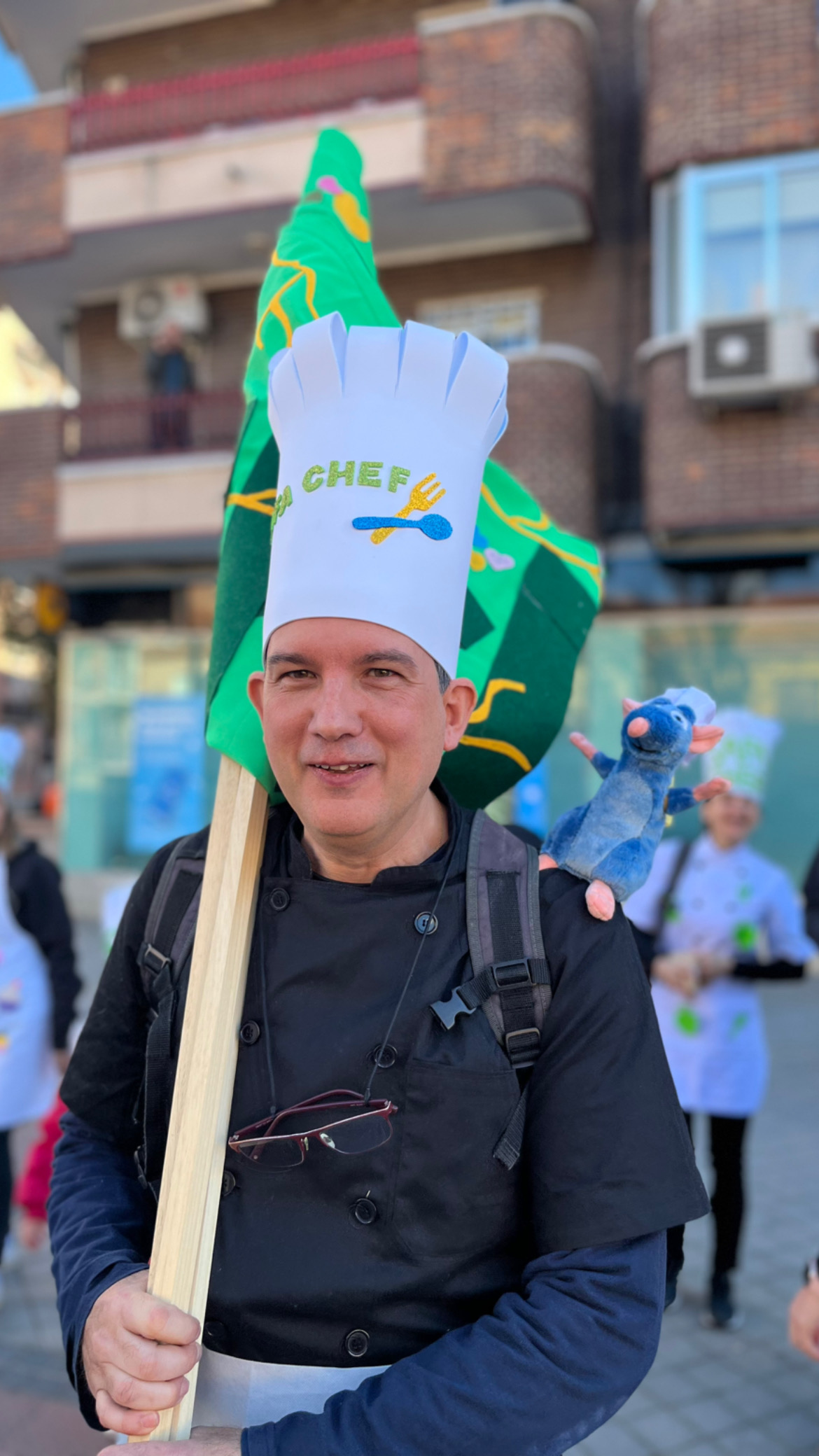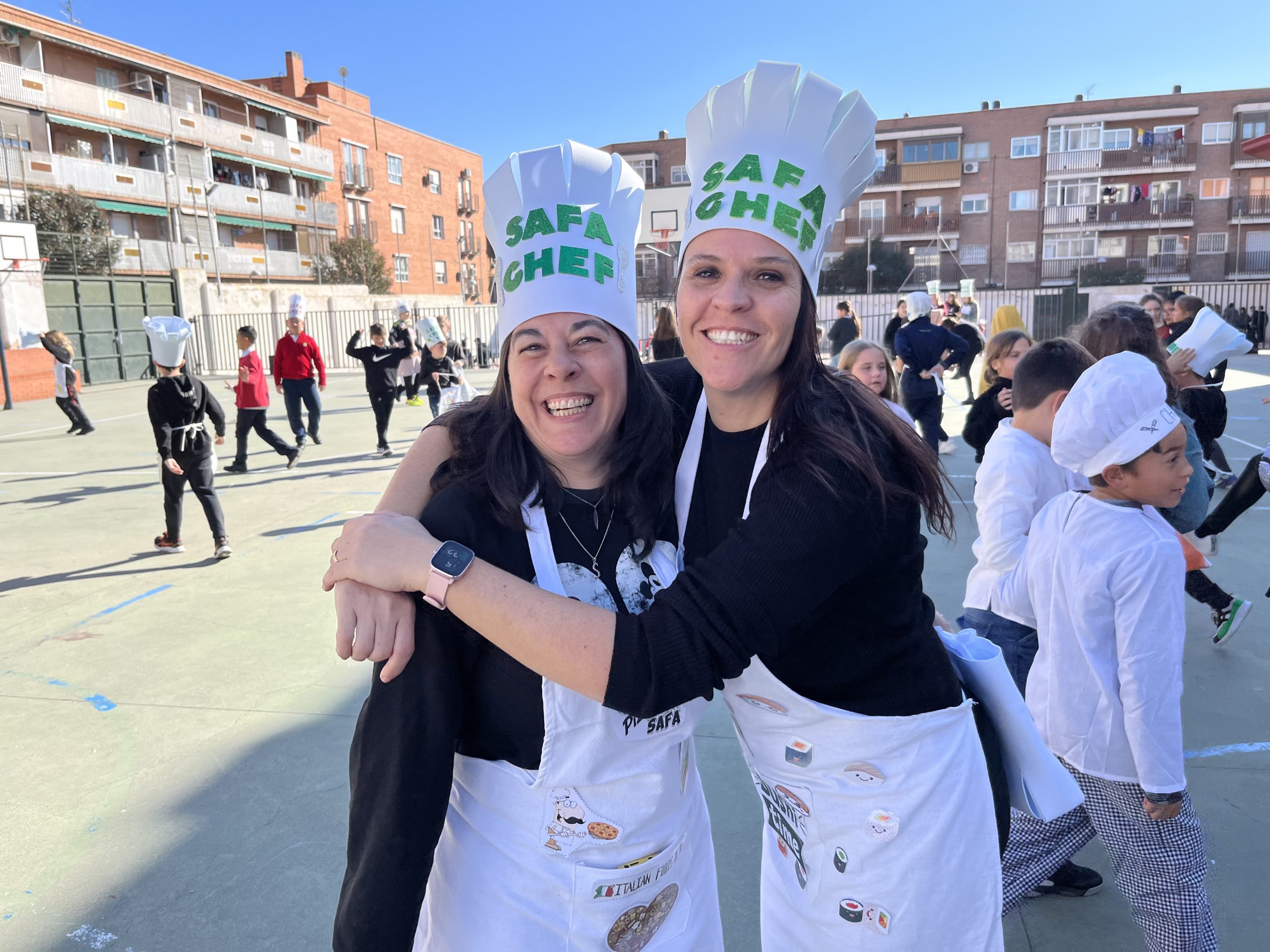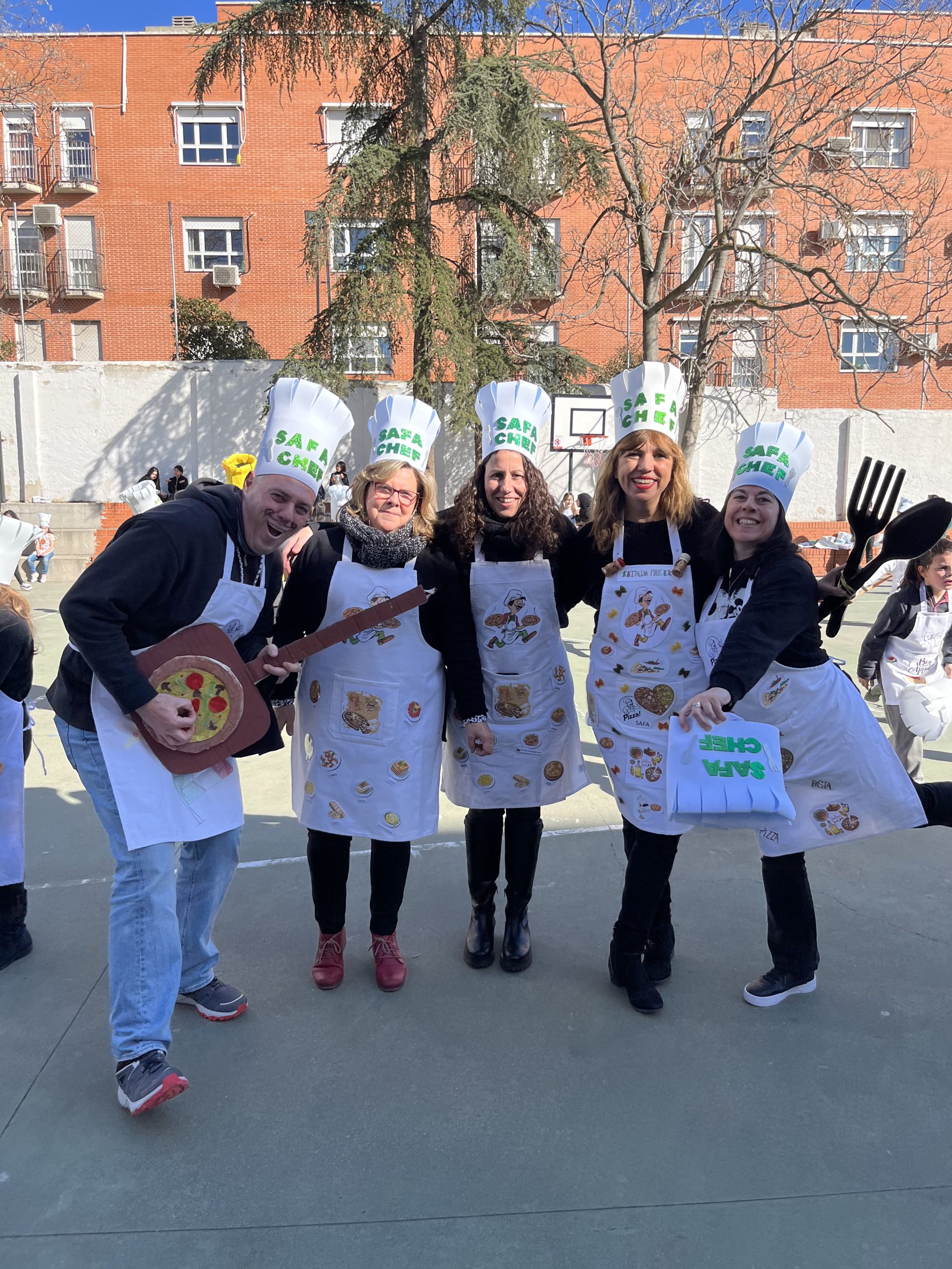 El viernes fue el colofón final: todo infantil y primaria nos vestimos de cocineros: reposteros, cocineros vegetarianos, cocineros de comida italiana y cocineros de sushi. El alumnado de 6º de primaria, de luto y con mucha pena, se encargó de quemar y enterrar nuestra sardina en el patio, a lo que siguió una fiesta con la mejor música carnavalera.