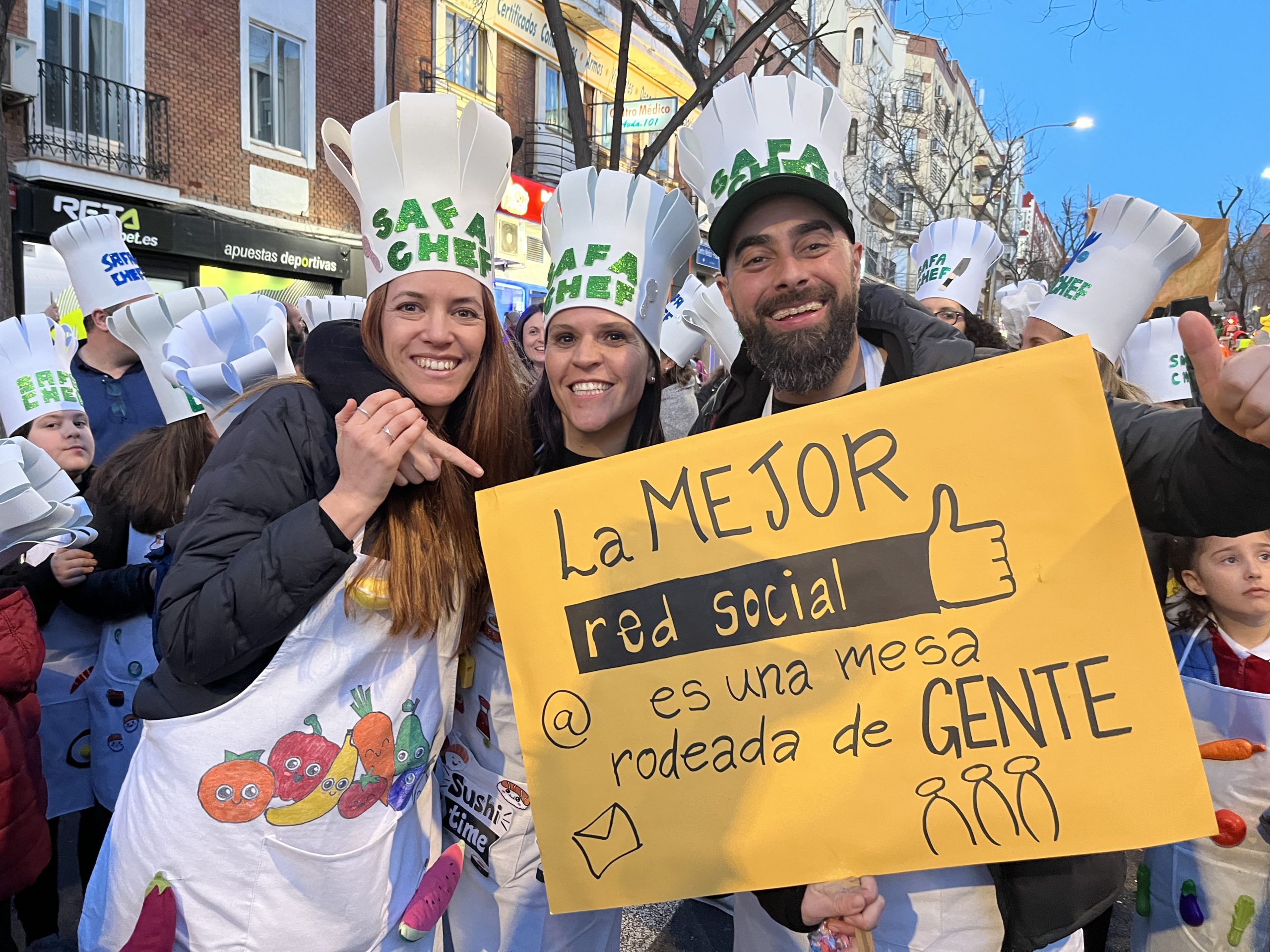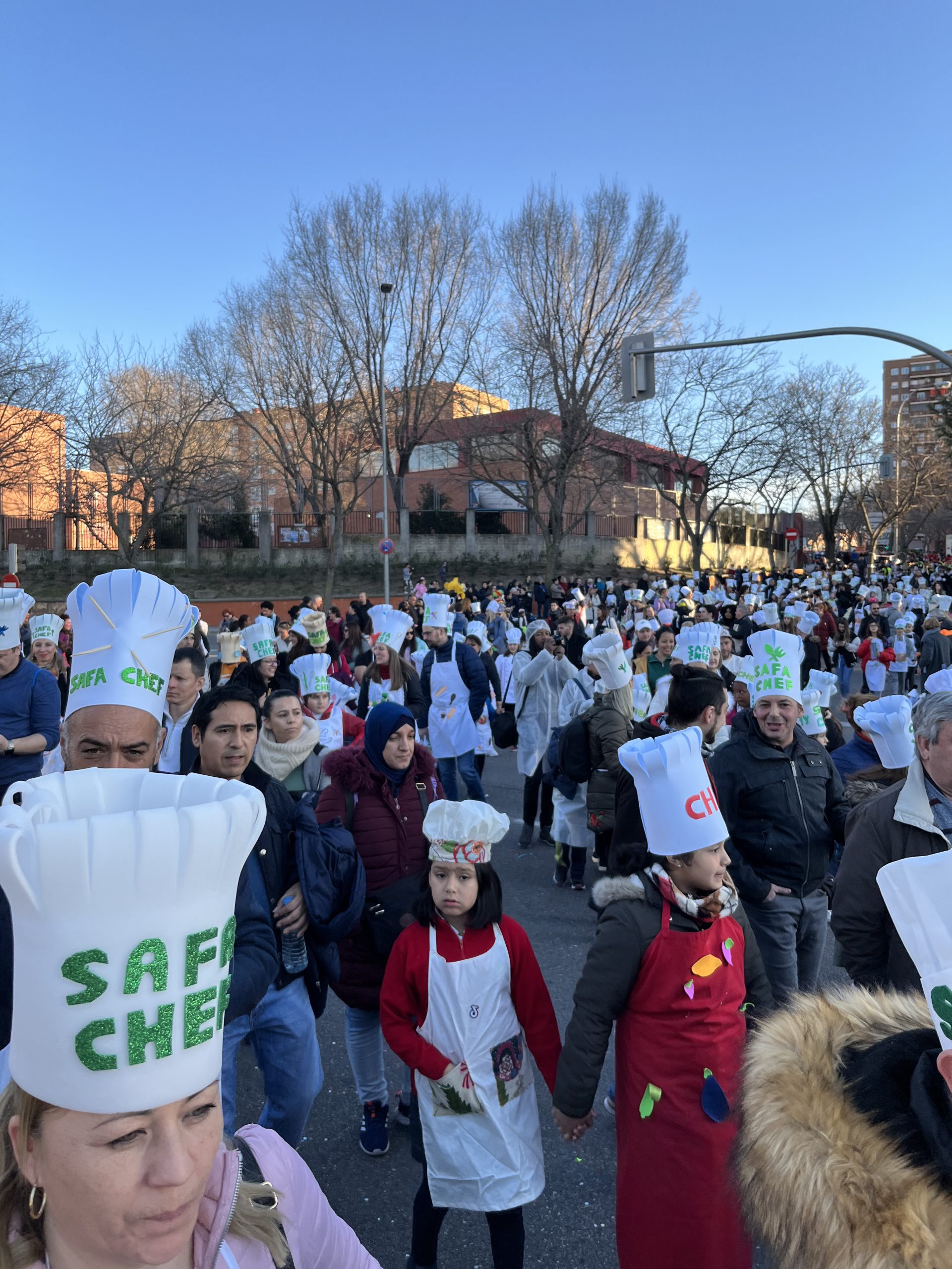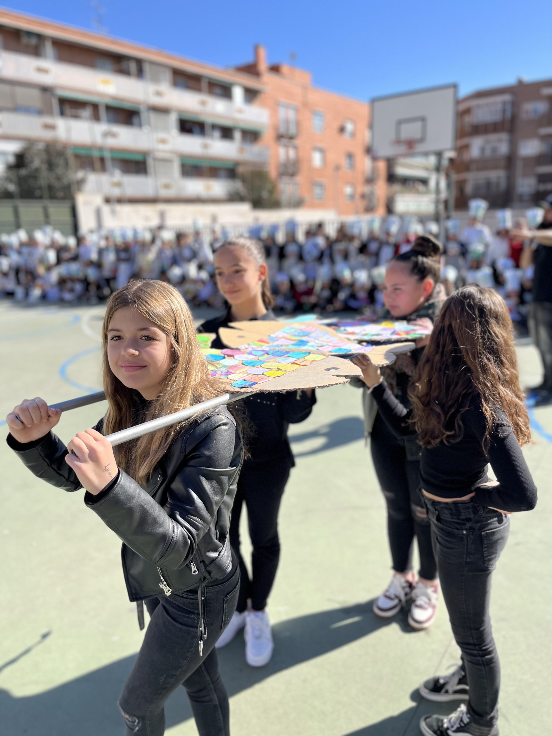 Y, como novedad, esa misma tarde nos apuntamos al desfile de Vallecas, al que asistimos más de 300 personas del cole: miembros del AMPA, familias de todos los cursos, profesores… un evento divertidísimo que, sin duda, repetiremos el año que viene.