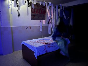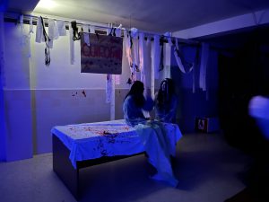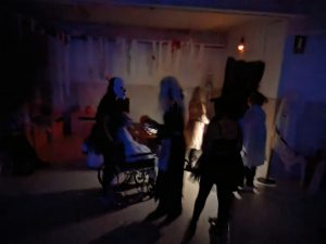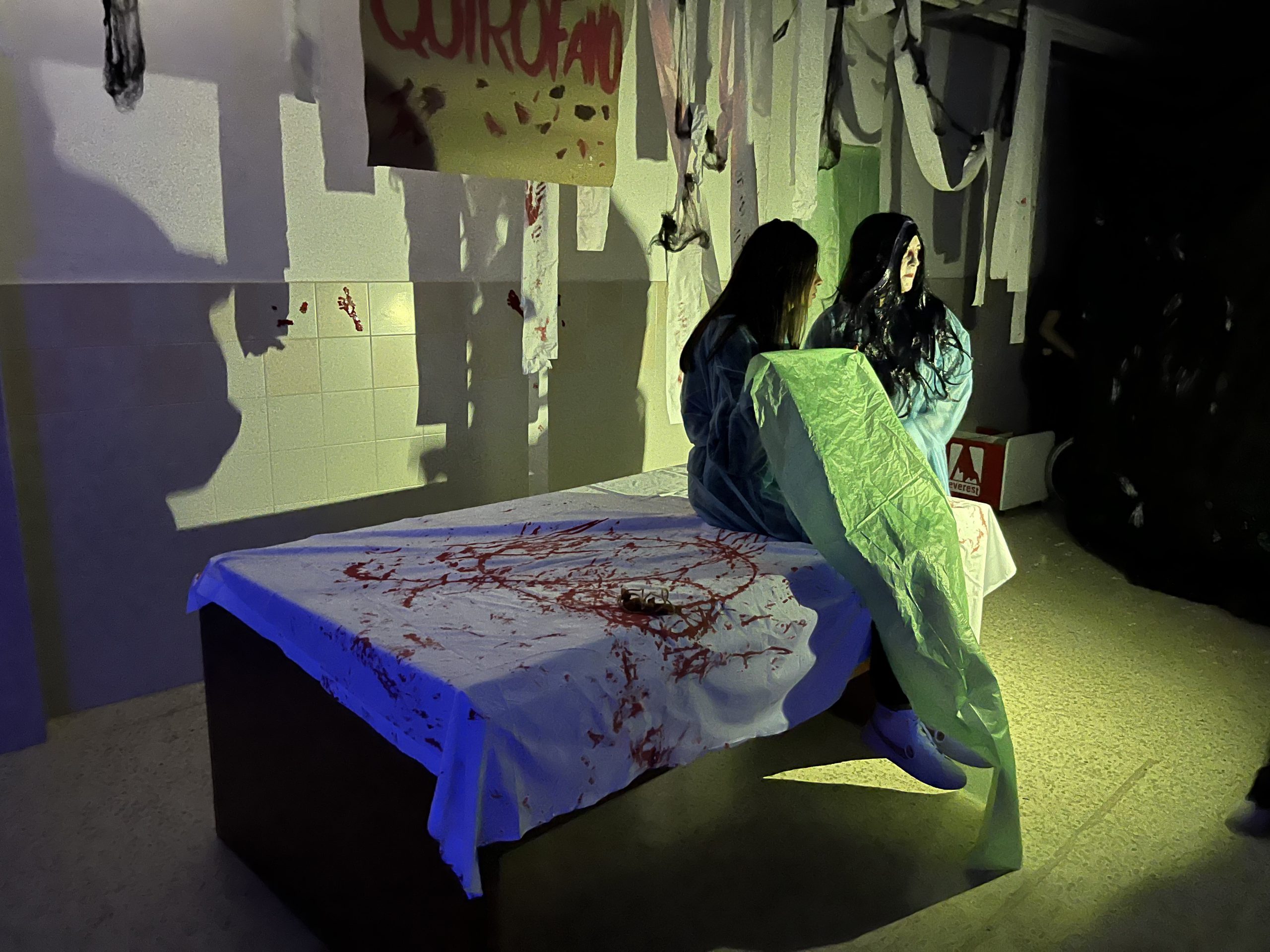 Por la tarde, el AMPA del cole nos preparó una gran sorpresa: transformaron el gimnasio en un terrorífico hospital, solo apto para los más valientes. Mientras tanto, los más pequeños disfrutaron de una fiesta en el patio donde pudieron lucir sus impresionantes disfraces y jugar y bailar con todos sus compañeros.