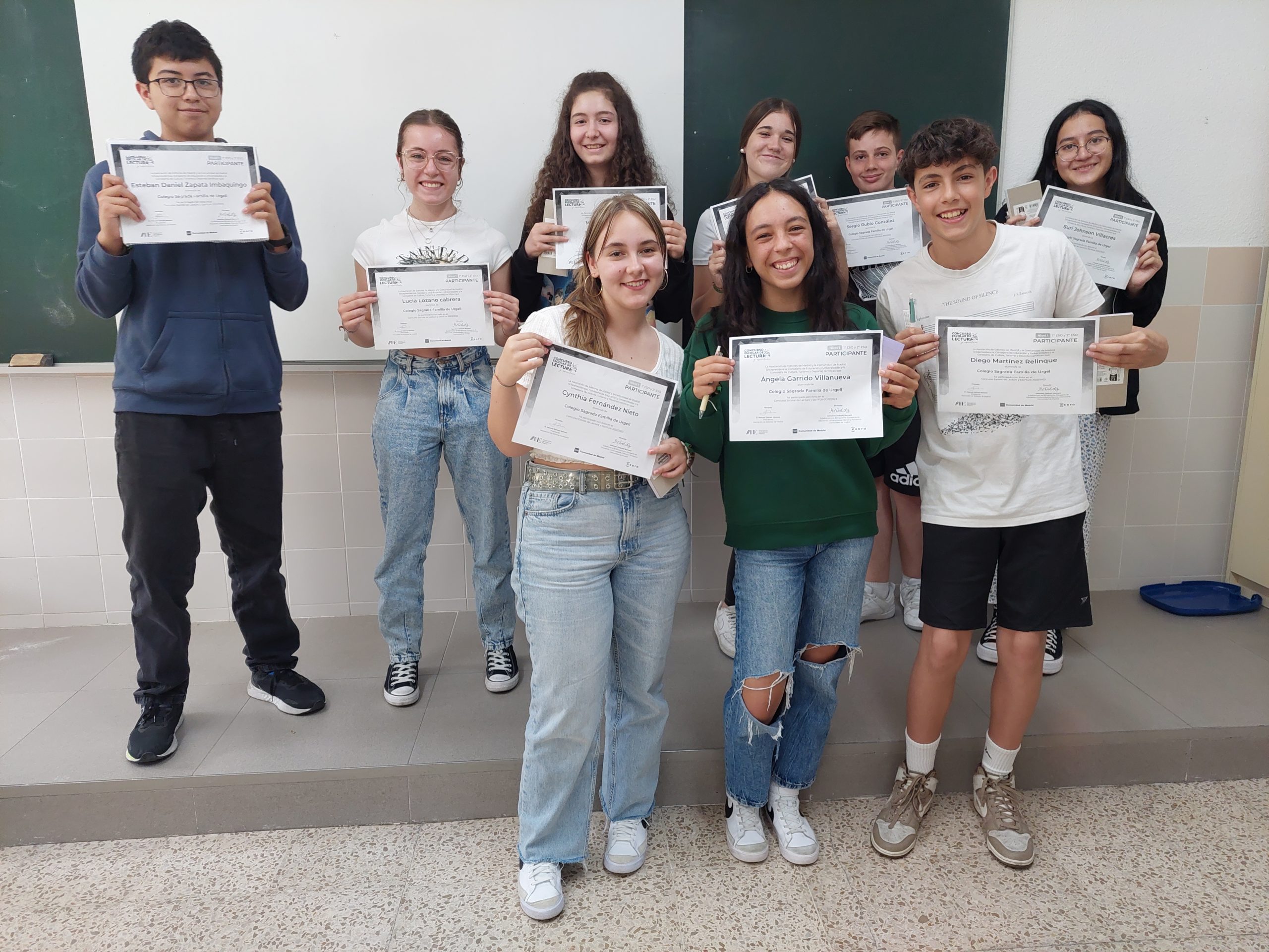 Todo el alumnado de 2° de la ESO propuso un microrrelato y el profesorado escogió cuáles presentar al concurso. De parte del colegio, los nueve han recibidos sus diplomas y un pequeño obsequio para que sigan escribiendo. ¡Felicidades!
