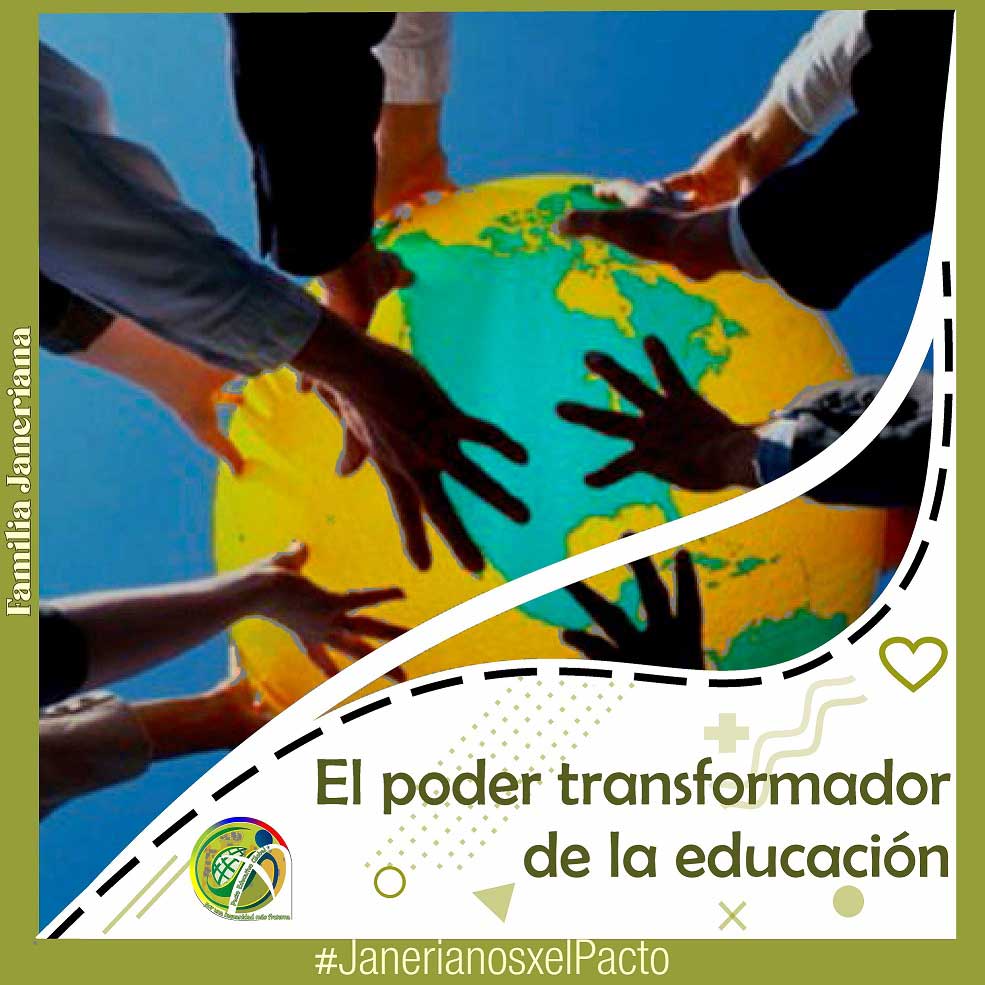 La iniciativa de Reconstruir el Pacto Educativo Global fue planteada por el Papa Francisco en octubre del 2020, preocupado por la crisis que vive el planeta y convencido de que la educación es la mejor manera de revertir esta situación. La propuesta del Papa es una invitación a unir esfuerzos a nivel mundial para crear una alianza educativa amplia y formar personas que reconstruyan la sociedad (hoy quebrada), con una humanidad más fraterna. Toda la Familia Janeriana se adhiere al Pacto Educativo Global, propuesto por el Papa Francisco. Adherirnos a este Pacto es un camino para crear un cambio global de mentalidad a través de la educación. Convencidos de que la educación es sobre todo una cuestión de amor y de responsabilidad y es una de las formas más efectivas para humanizar el mundo y la historia, como afirma el Papa Francisco, queremos DEJAR NUESTRA HUELLA POR UN MUNDO MEJOR y nos comprometemos a: