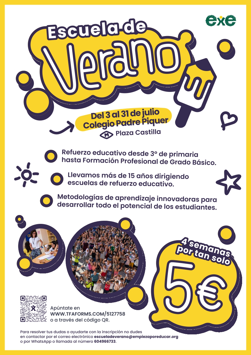 Queremos compartir información sobre la Escuela de Verano que, como cada año, organizamos desde Empieza por Educar. Se trata de una gran oportunidad para el alumnado, ya que, por un lado, sirve de refuerzo educativo del curso que acaban de finalizar y, por otro, trabajarán el desarrollo de competencias transversales para el aprendizaje. A continuación os compartimos información relevante que podéis encontrar también en el folleto informativo. [descargar aquí]