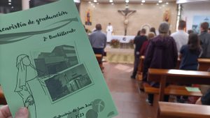 Así, el pasado 30 de mayo, alumnos y familias de 2º de Bachillerato, junto a los profesores y a la comunidad de religiosas del colegio, se congregaron en nuestra Parroquia de «Patrocinio de San José», a las 16.30h, para celebrar juntos la eucaristía de fin de curso. Fue una celebración muy emotiva en la que se mezclaron momentos de escucha de la Palabra con otros en los que compartir todo lo bueno que cada alumno lleva dentro de sí y agradecer al Señor y a nuestra beata Ana María Janer por tanto bien recibido.