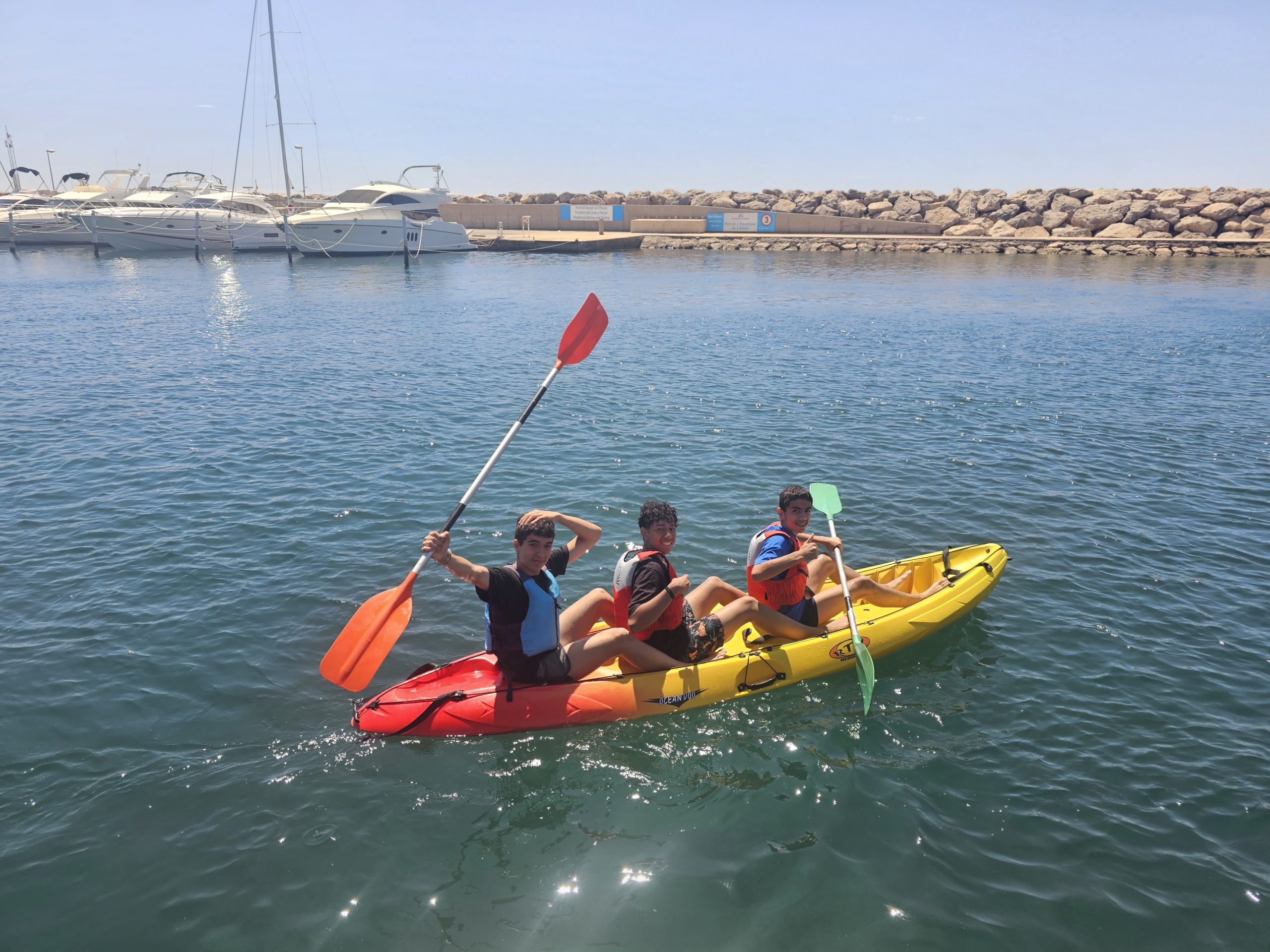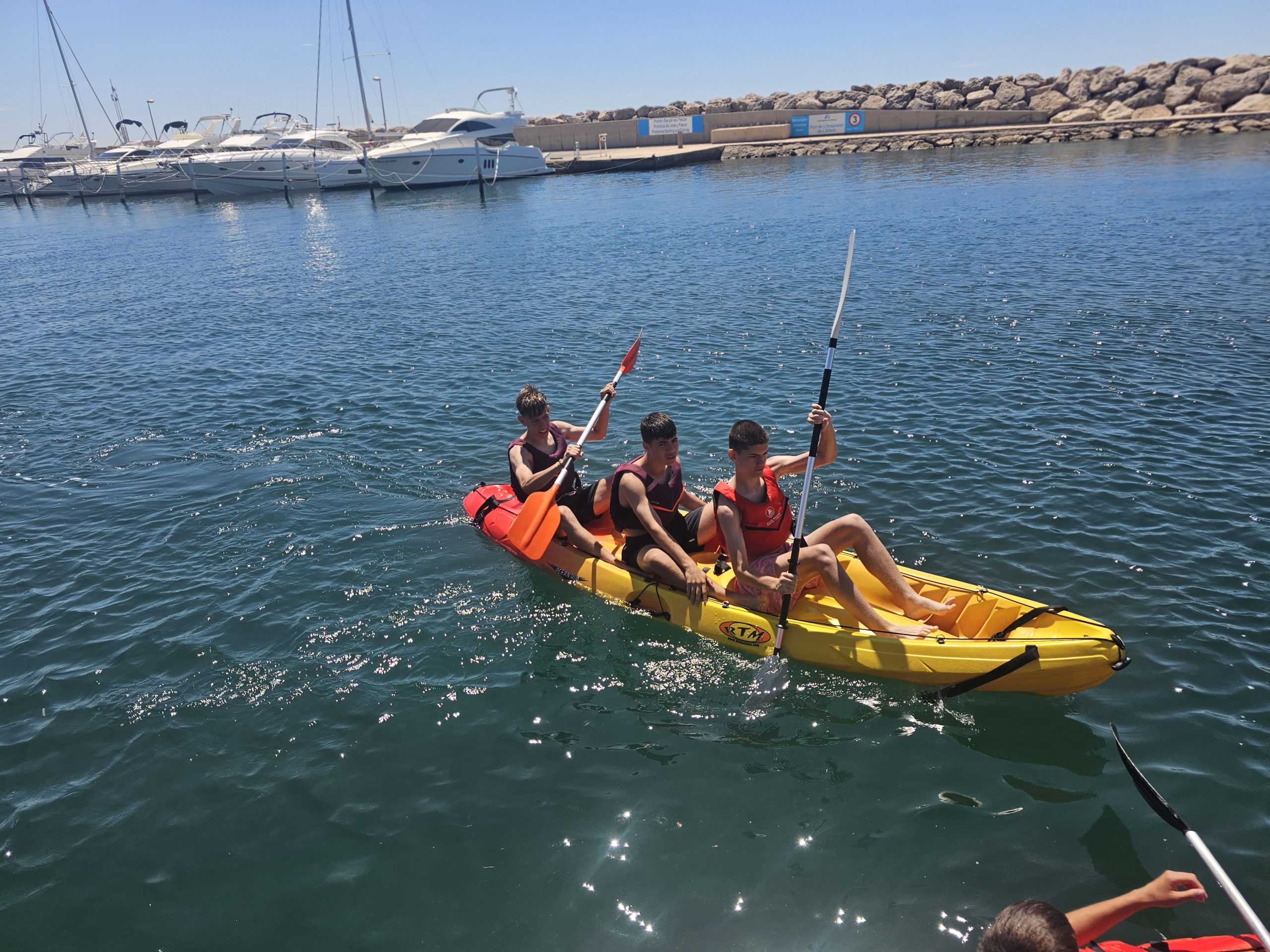 Después de tanta emoción en tierra firme, hoy nos hemos lanzado al agua para disfrutar de un día lleno de deportes acuáticos y una inolvidable travesía en catamarán. Nuestros estudiantes van a tener la oportunidad de demostrar sus habilidades en el agua. ¡Qué maravilla deslizarse por las azules aguas del Mediterráneo mientras Barcelona nos regala sus mejores vistas desde el horizonte!