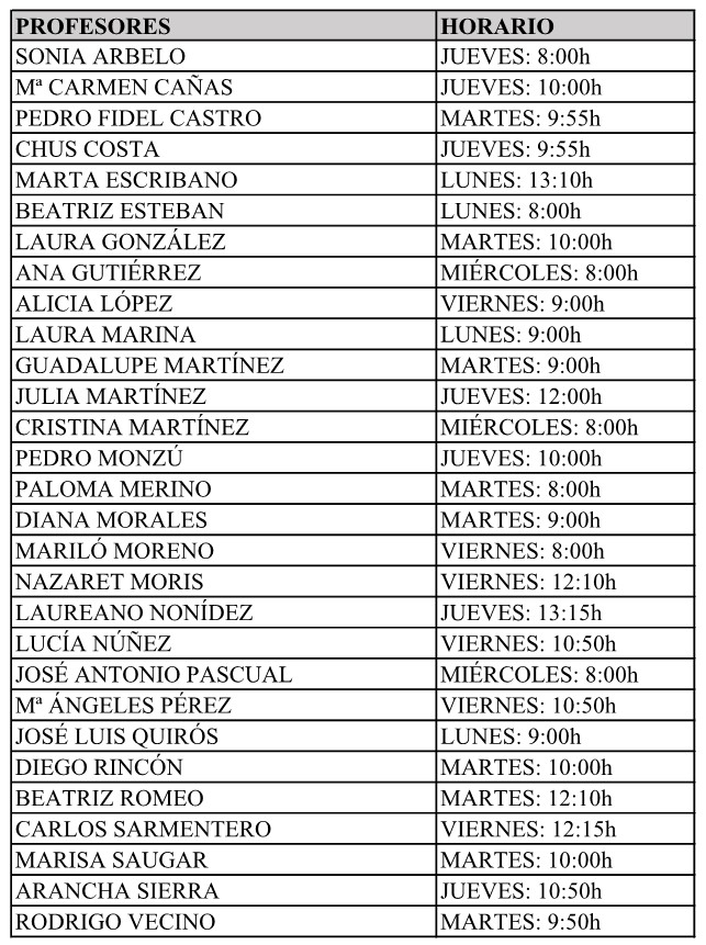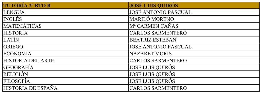 TUTORÍAS Y PROFESORADO 2º BACHILLERATO