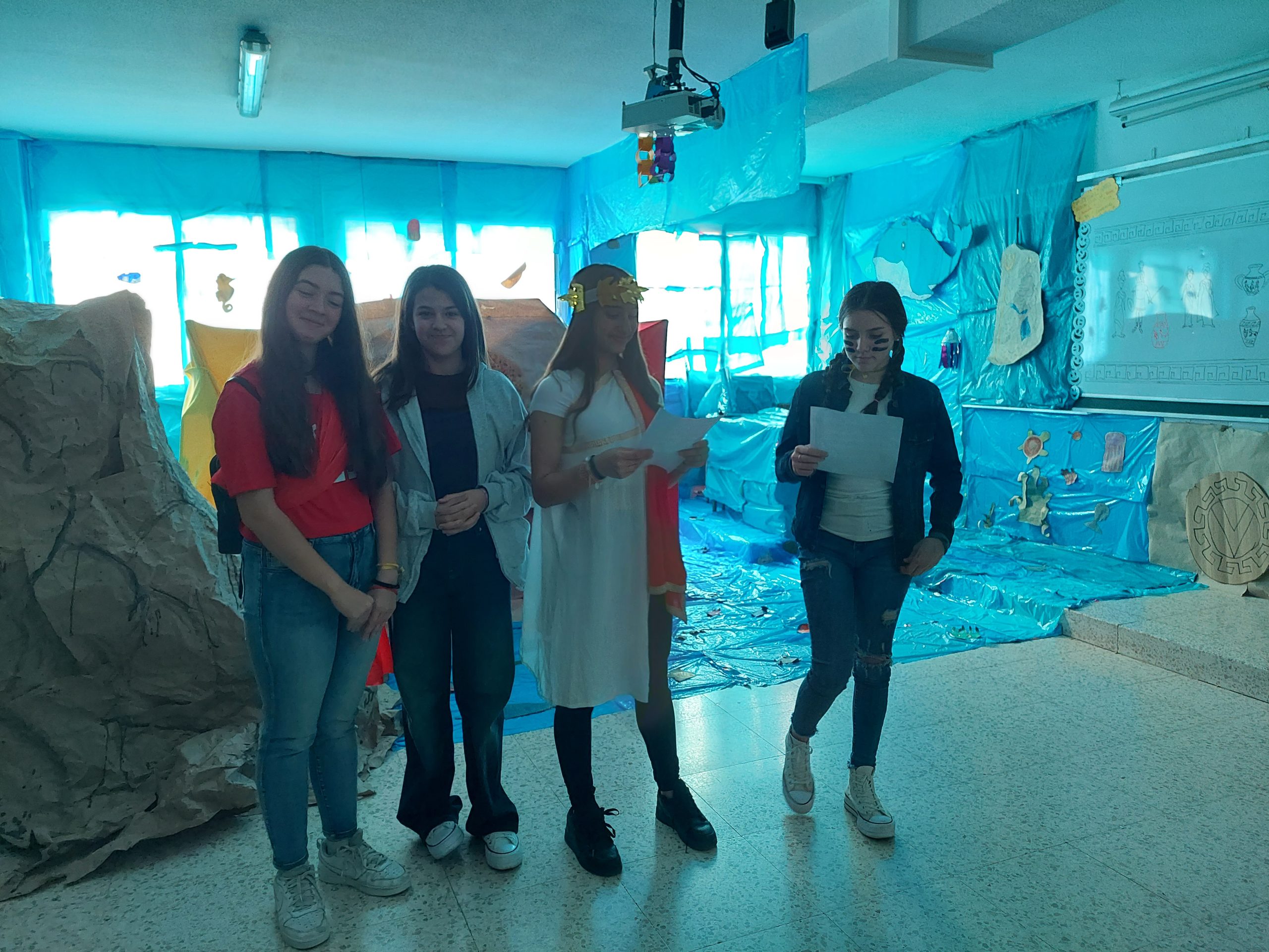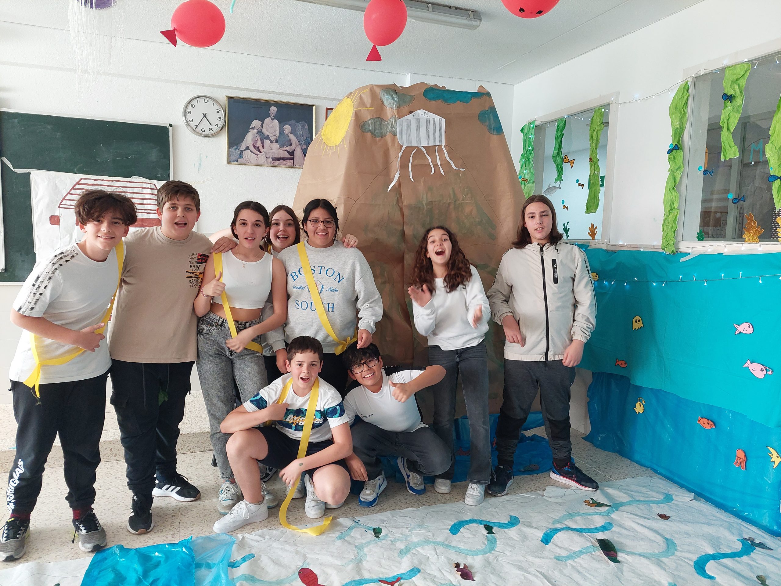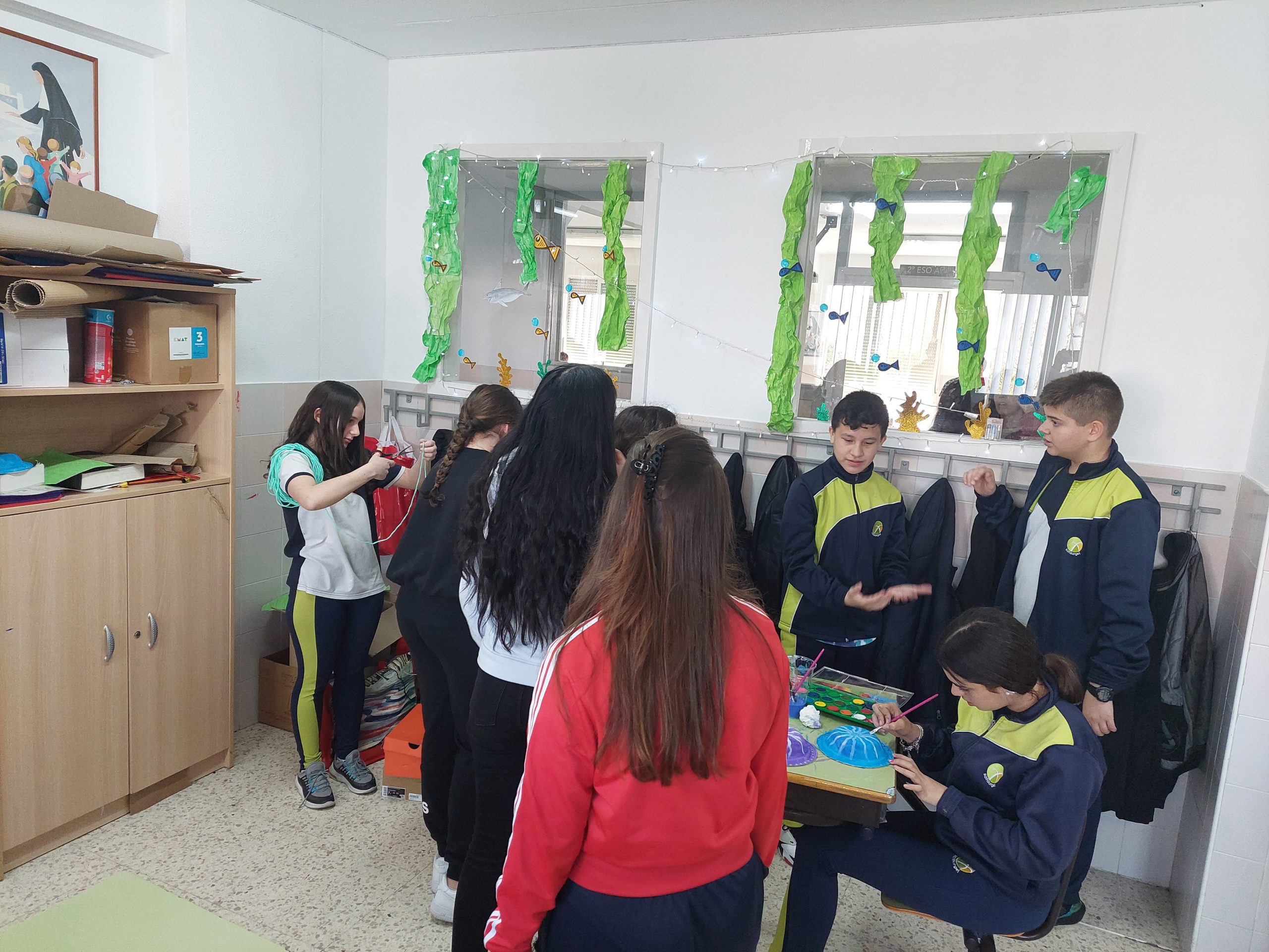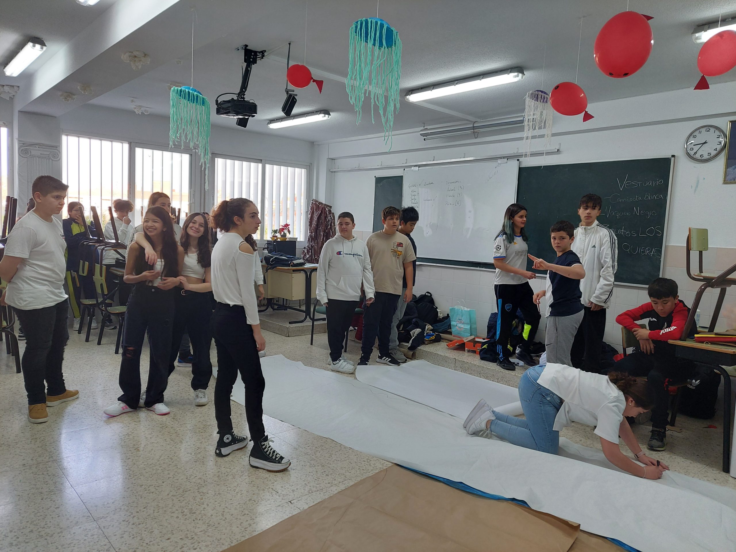 La primera semana nos organizamos con ellos para que cada equipo hiciera un reto de cada asignatura, después probarlos y más tarde decidir cuáles eran los mejores. En la siguiente semana, nos coordinamos para traer el material y hacer de nuestra clase un auténtico templo de Thalassa bañado por el mar Mediterráneo.