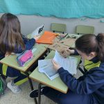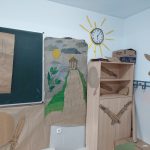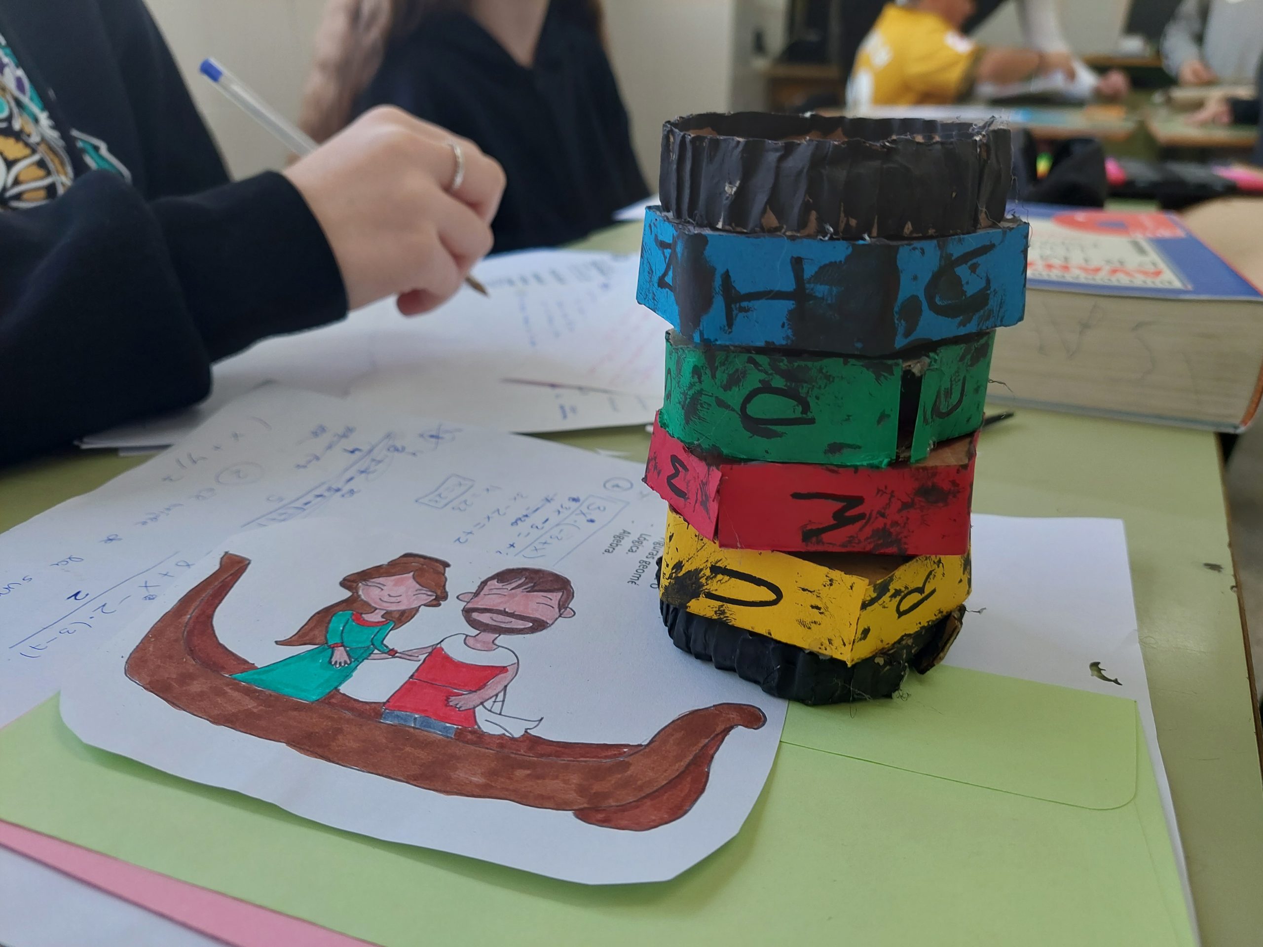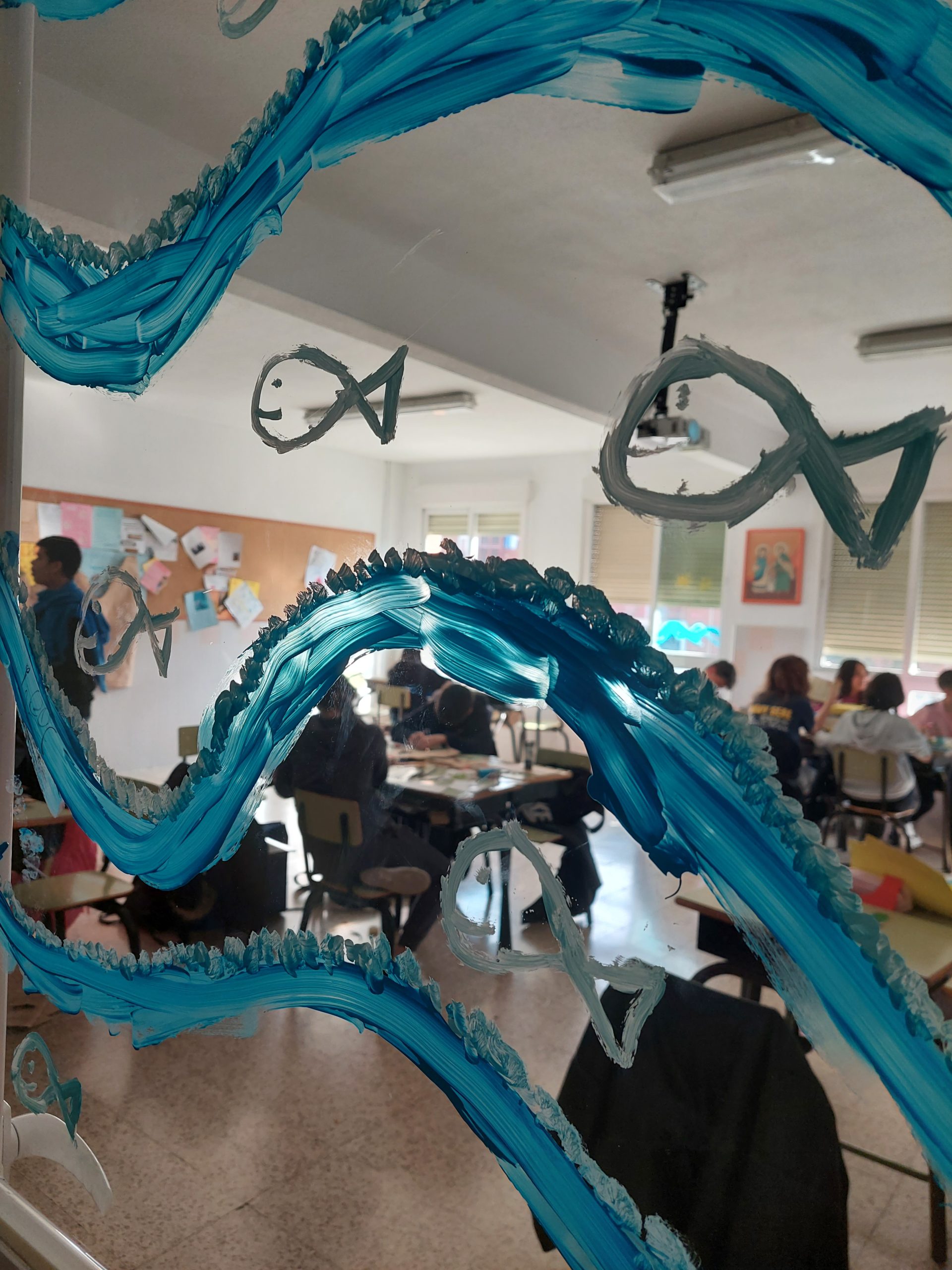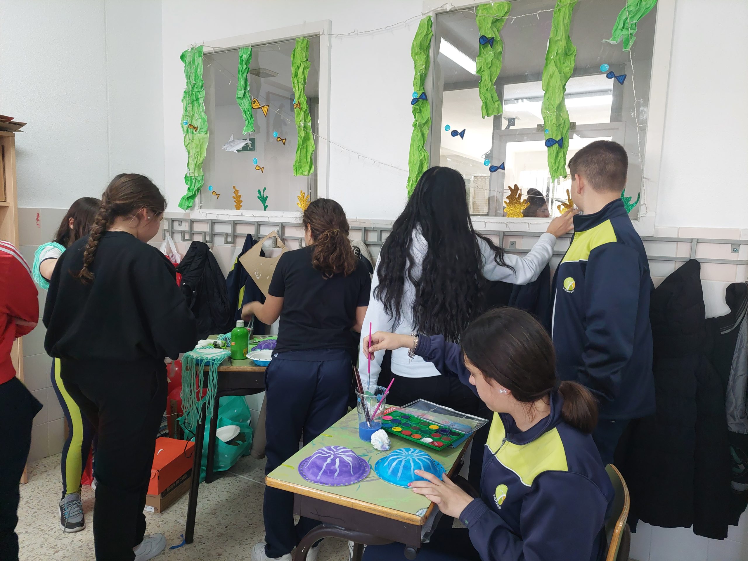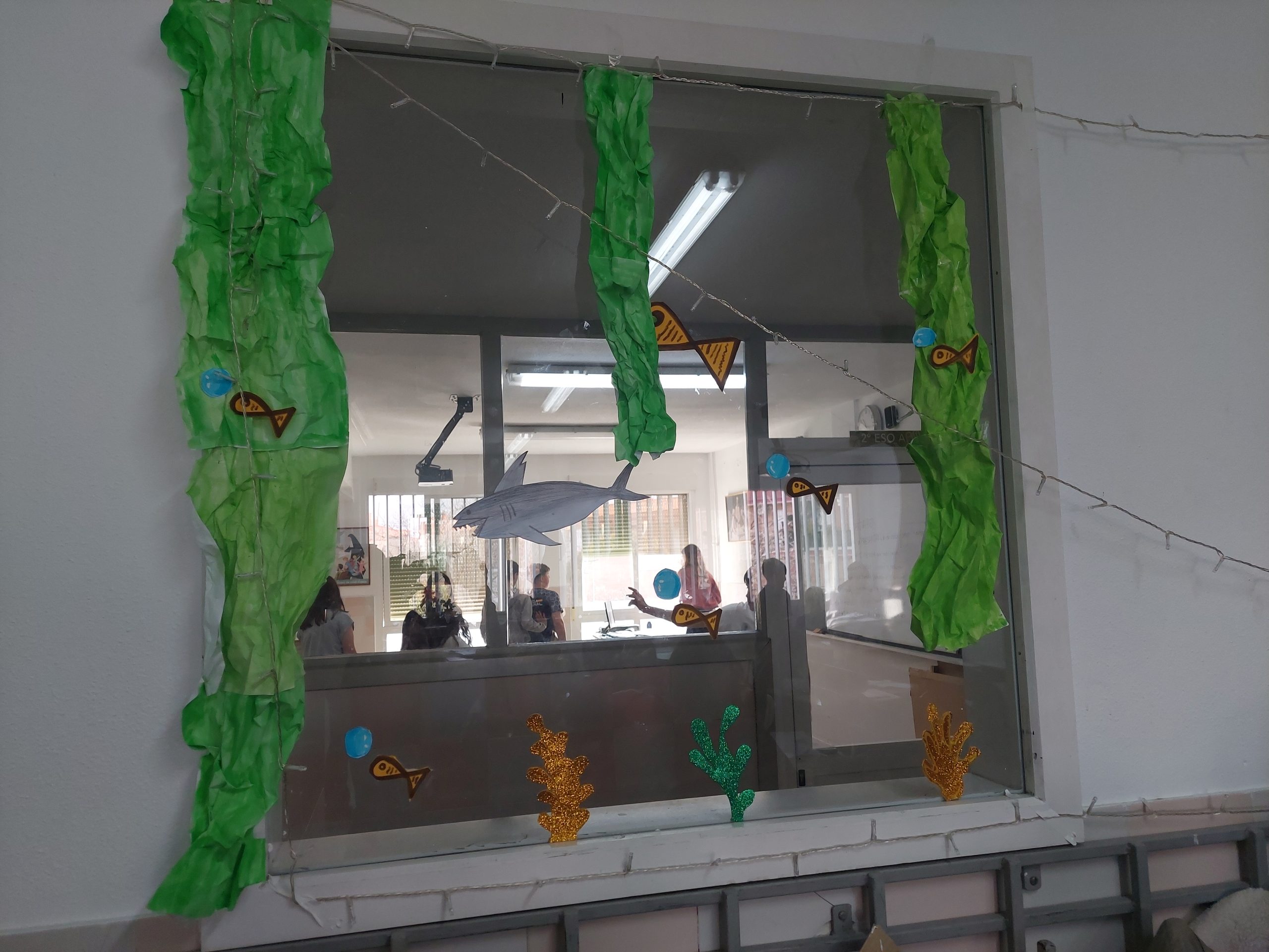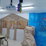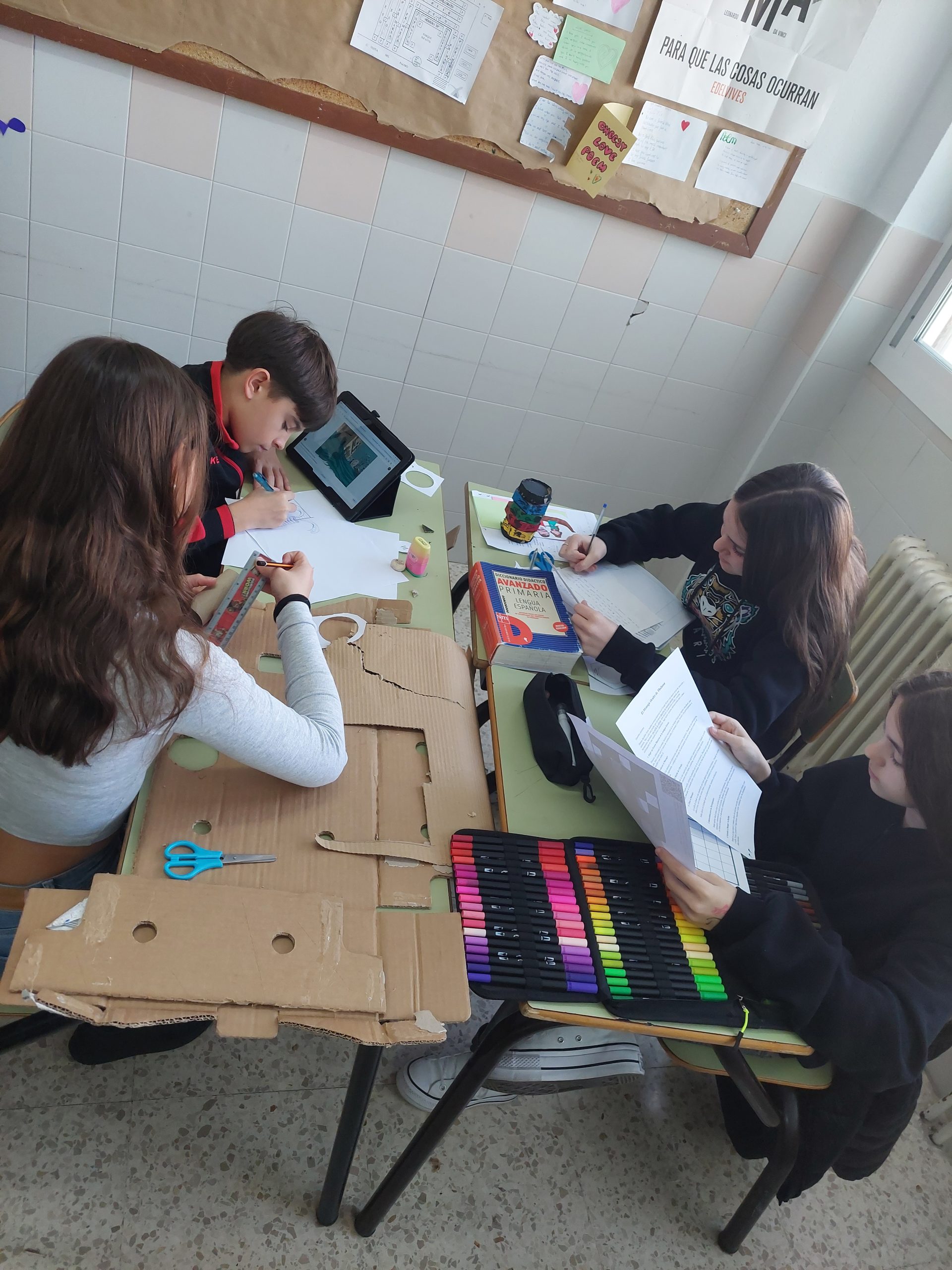La primera semana nos organizamos con ellos para que cada equipo hiciera un reto de cada asignatura, después probarlos y más tarde decidir cuáles eran los mejores. En la siguiente semana, nos coordinamos para traer el material y hacer de nuestra clase un auténtico templo de Thalassa bañado por el mar Mediterráneo.