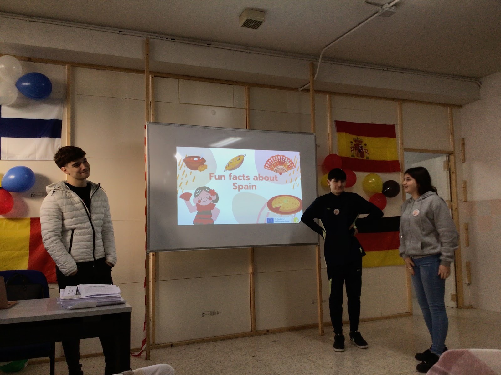 El lunes 28, comenzó oficialmente la semana española, todos los alumnos nos dirigimos al colegio a realizar actividades de iniciación, como un círculo de conexión en el que compartimos los objetivos que teníamos cada uno, el cual nos resultó muy inspirador. Estas dinámicas nos sirvieron para conocernos y ayudarnos a que trabajar en cooperativo no fuese tan incómodo.Todos los países presentamos un póster y vídeo preparados con anterioridad acerca de la situación actual de los centros, con los más y los menos de cada uno y una presentación de datos curiosos de España.