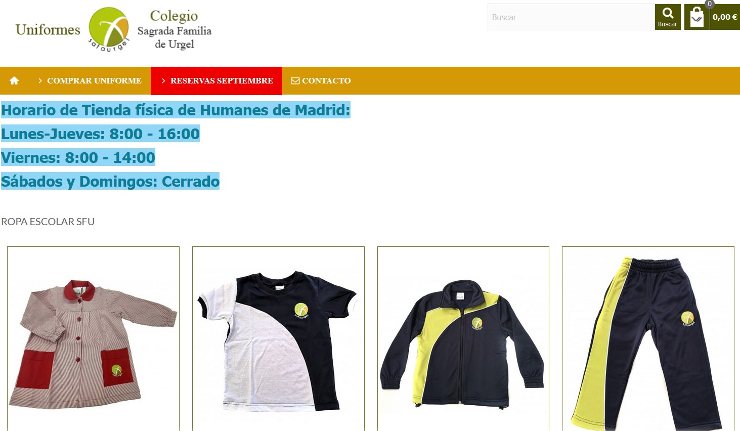 Reserva Online Uniforme Colegio Sagrada Familia de Urgel septiembre 2024