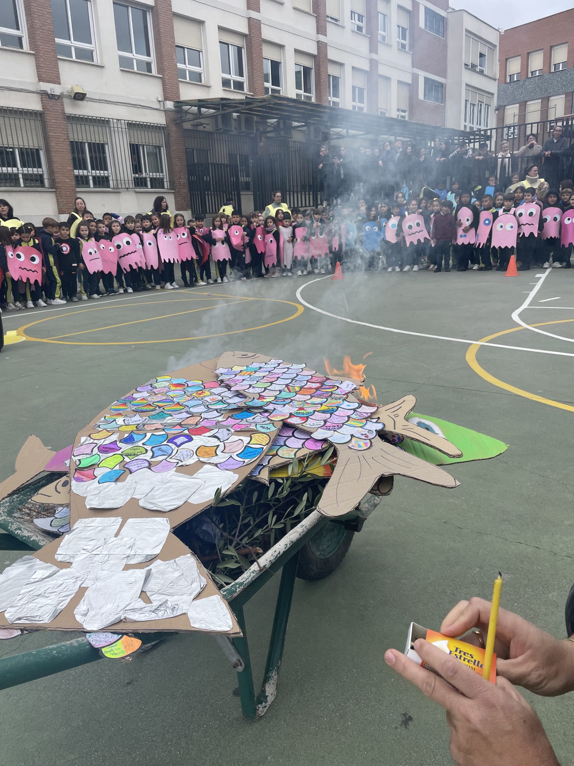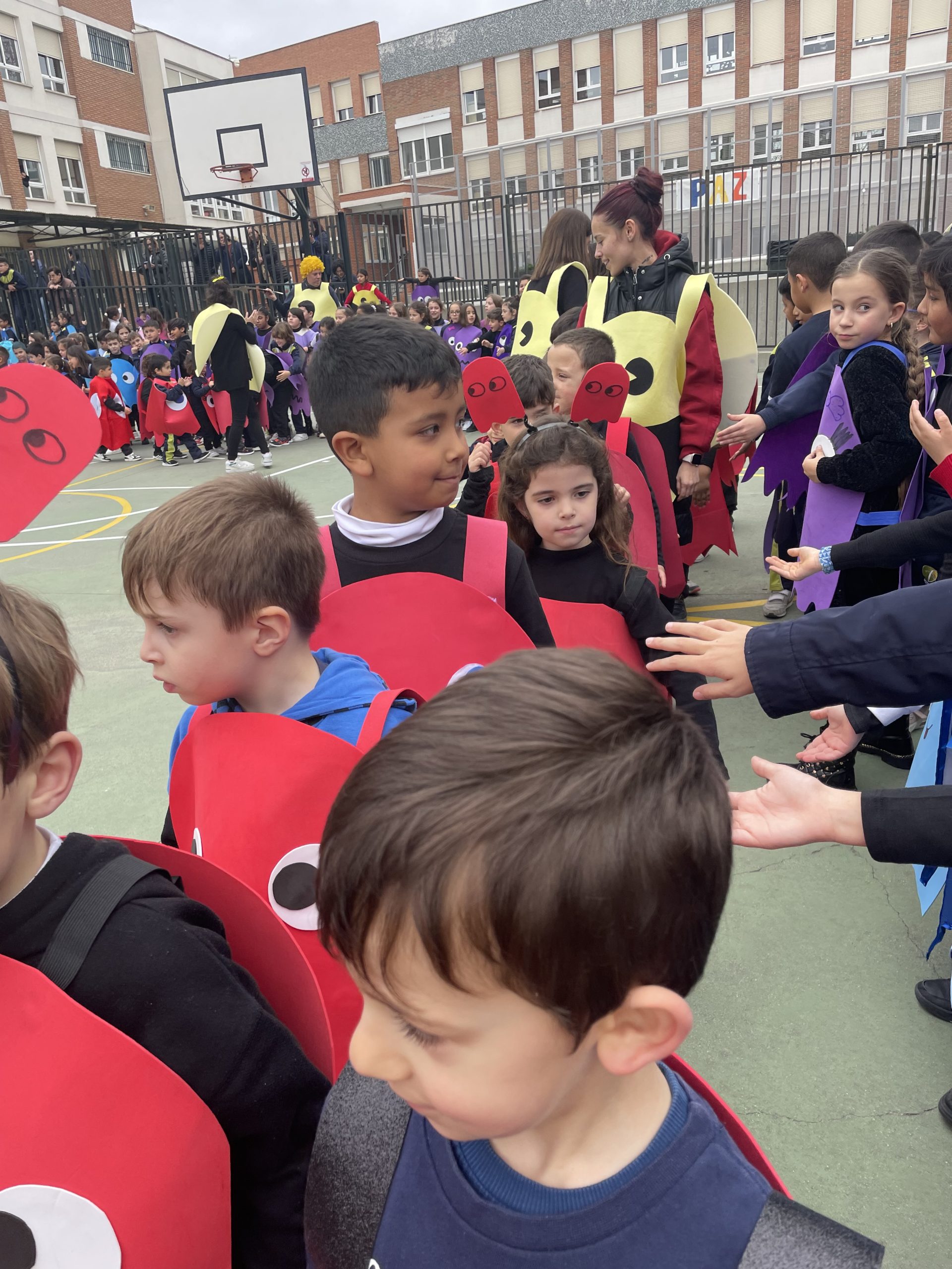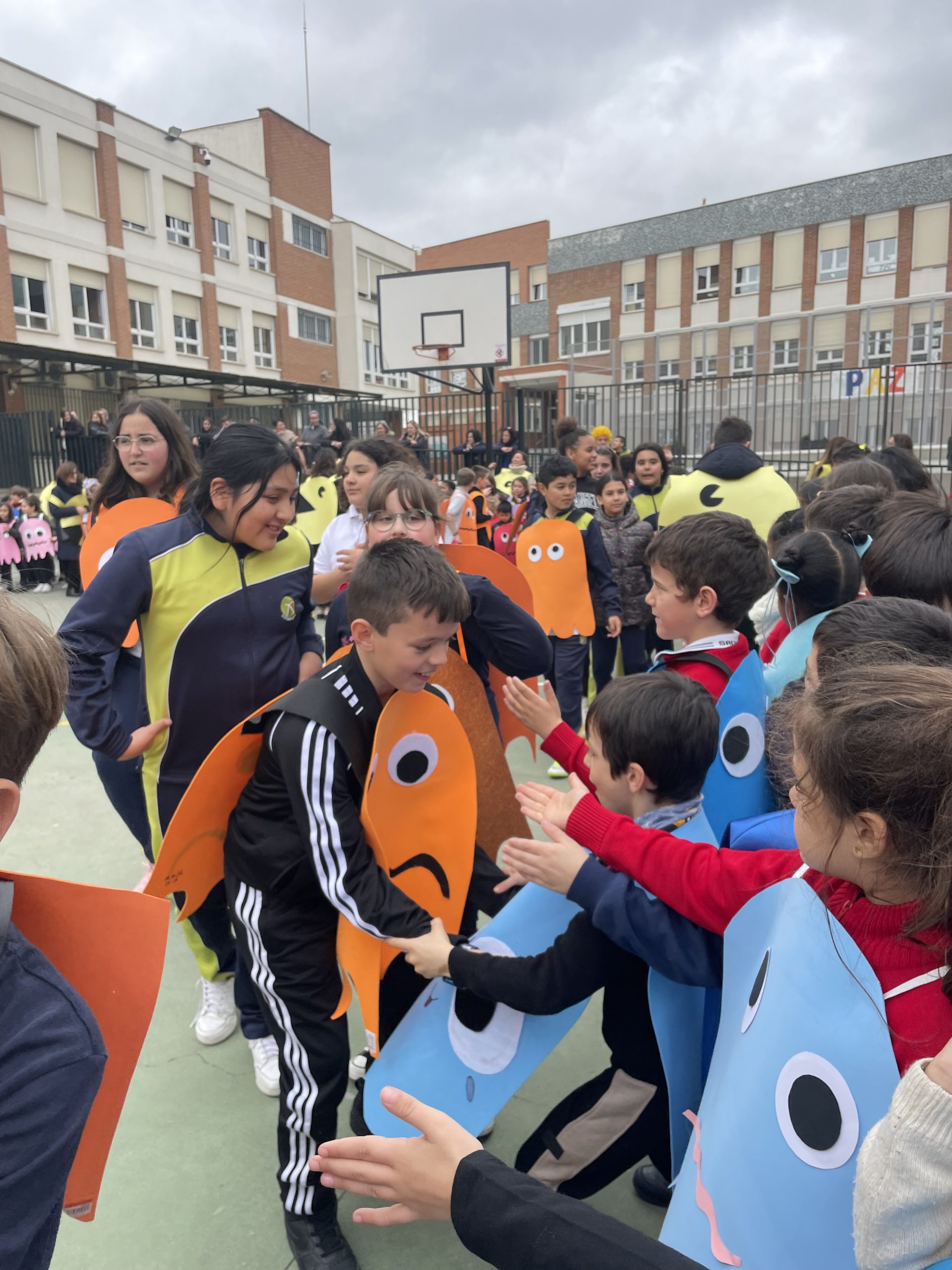 Este año, para finalizar el carnaval, nuestra temática era PAC-MAN, y aunque el tiempo nos impidió disfrutar del desfile organizado por el Ayuntamiento de Vallecas, el pasado martes, 13 de febrero, hemos podido concluirlo con nuestro tradicional desfile por el patio y la quema de la sardina en ésta semana.