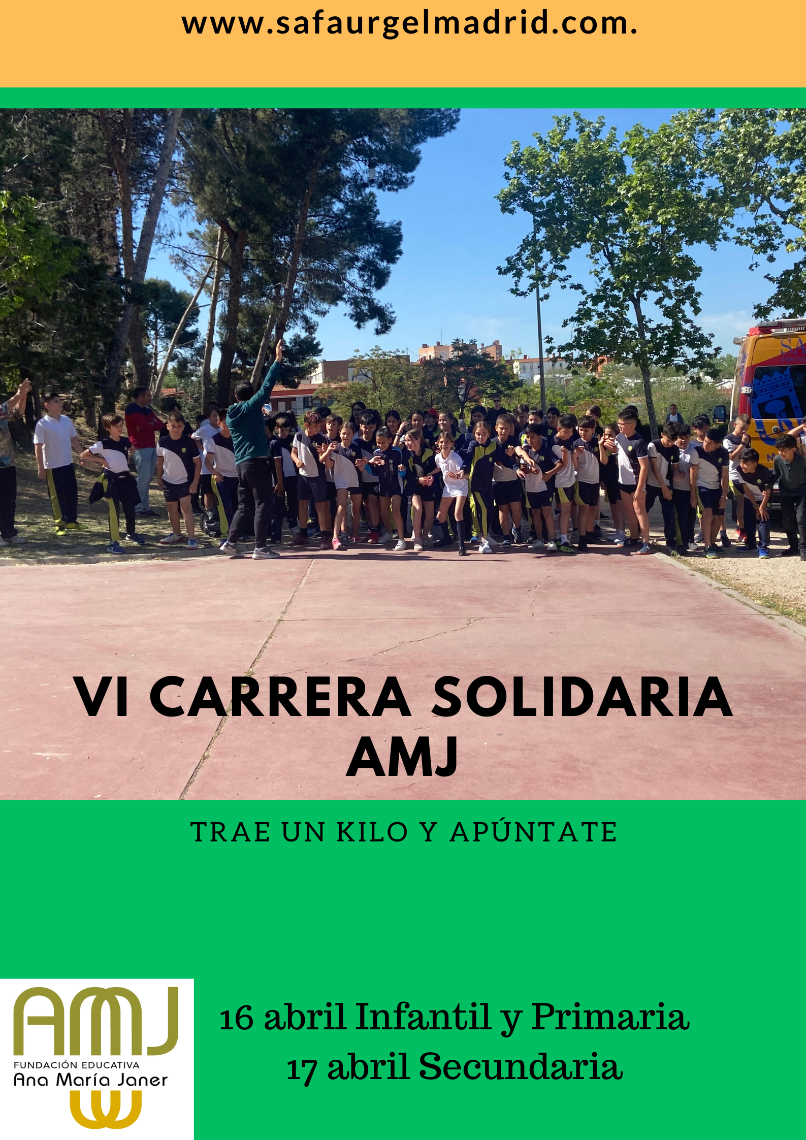 Una vez más volvemos con nuestra carrera solidaria Ana María Janer. La carrera se realizará en dos días diferentes el 16 de abril Infantil y Primaria y el 17 de abril Secundaria y Bachillerato, separando así nuestros alumnos más mayores de los más pequeños. Las carreras se realizarán por cursos, acompañados del profesorado. El horario será de mañana y las diferentes carreras serán entre las 9’15h y las 12’30h aproximadamente. Estas carreras se realizarán en el parque Azorín y los alumnos se trasladarán andando. En breve os llegará la autorización como para cualquier otra salida del centro si no os ha llegado todavía.